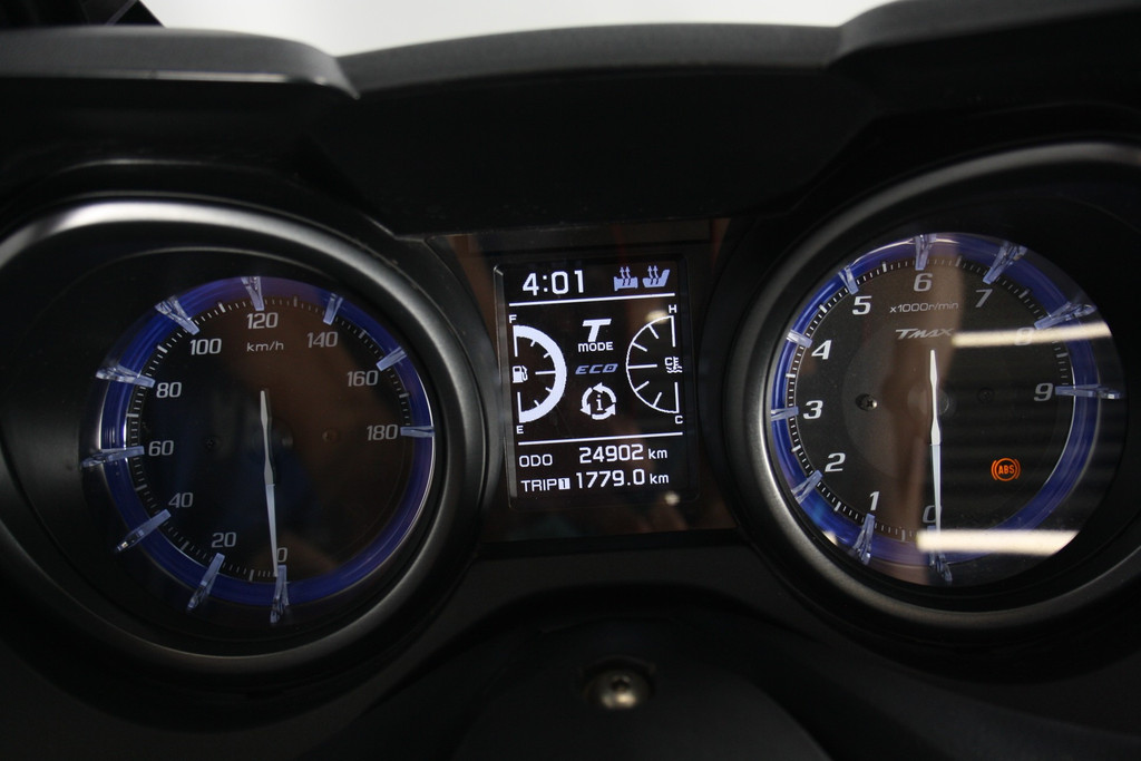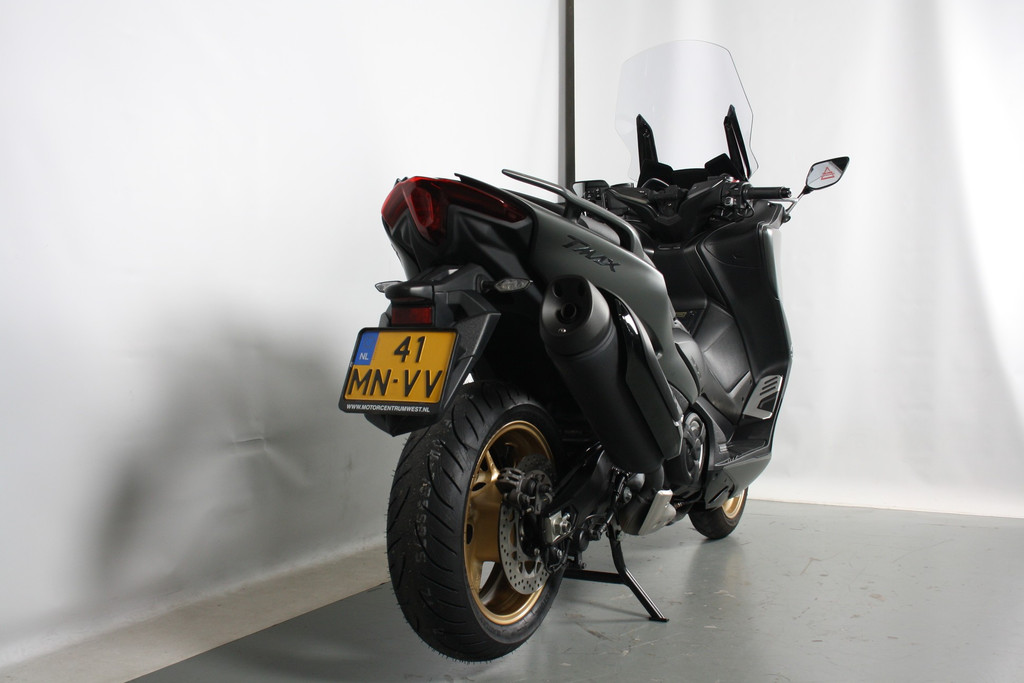 Als Tech Max-uitvoering is deze TMAX rijk uitgerust met premium features zoals een elektrisch verstelbaar windscherm, verwarmde handvatten en zadel, keyless start, cruise control en een volledig digitaal TFT-dashboard. Het scherpe design, de geïntegreerde LED-verlichting en de luxe afwerking geven deze scooter een hoogwaardige uitstraling.